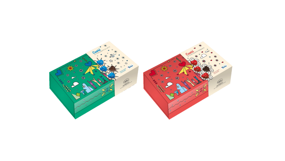I Cuori di Cioccolato sono prodotti in esclusiva da Lindt-Caffarel per Fondazione Telethon. Uno scrigno impreziosito dal tocco creativo di un'illustratrice che contiene 15 cuori di cioccolato, con 15 mini dediche tutte da scoprire.